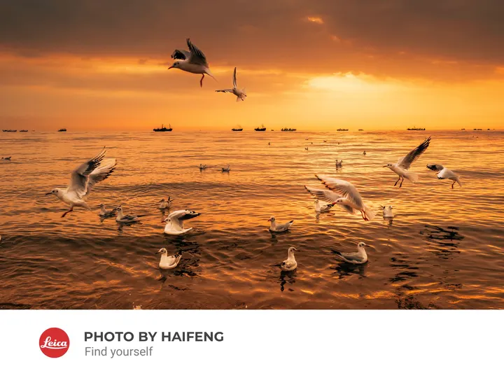 随着海边日出,成群的海鸥也愉快的飞舞起来,为美好的早晨增添了无尽的情趣。
