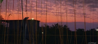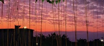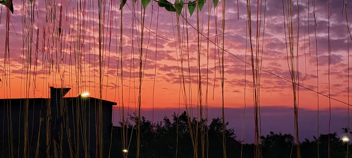 农村的傍晚,晚霞染红了天空,架子上垂下的根须,犹如一帘幽梦,让人遐想连篇。