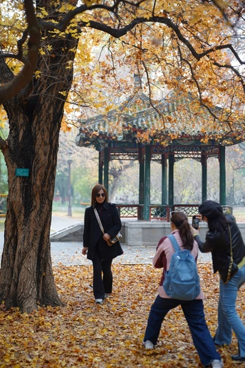 在这张照片中,色彩运用十分鲜明,秋天的金色叶子与被摄者的服饰形成了良好的对比,传达出浓烈的季节氛围。然而,某些部分的色调略显混杂,特别是背景中的杂物可以考虑简化处理,以更突出主体。光影方面,光线柔和,整体光照均匀,给人一种温暖的感觉,但光线的方向性稍显不足,可以通过调整拍摄角度使光影效果更具层次感。构图遵循了一定的规则,三分法应用得当,但主体与后景的距离过近,造成了视觉上略显拥挤,建议适当调整主体位置以增强空间感。后期处理方面对对比度和饱和度的调整恰到好处,增强了照片的表现力,但需避免过度锐化,使画面保持自然感。主题原创性方面,选择在落叶下拍摄是一个常见的思路,建议尝试不同的视角和拍摄手法来展现新的创意。情感共鸣方面,照片能够引发观者的共鸣,尤其是在这样的秋季氛围中,人们容易产生思乡或怀旧的情绪。最后,照片的思想深度不足,未能引发更深的思考,建议在拍摄时考虑加入叙事性的元素,提升作品的深度与社会意义。综合以上分析,这是一张优秀的作品,但仍有改进空间,尤其在构图和创意表达上。