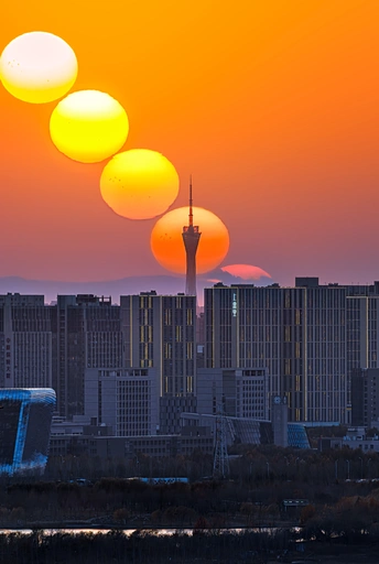 少有的通透天气,几十公里的距离福塔以及远处伏羲山肉眼可见,也是拍到的太阳最大的一次