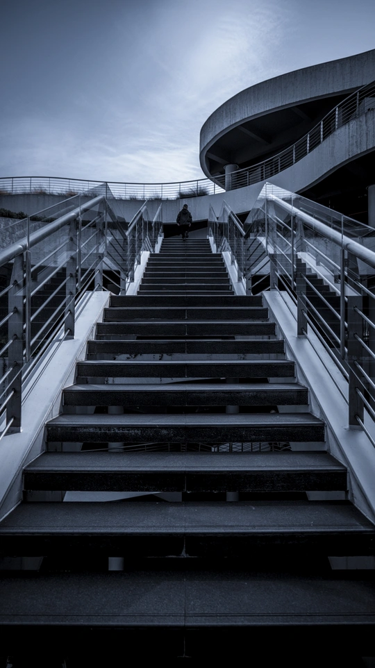 在黑白之间,楼梯盘旋而上,承载着每一个脚步,通向未知的远方。