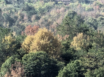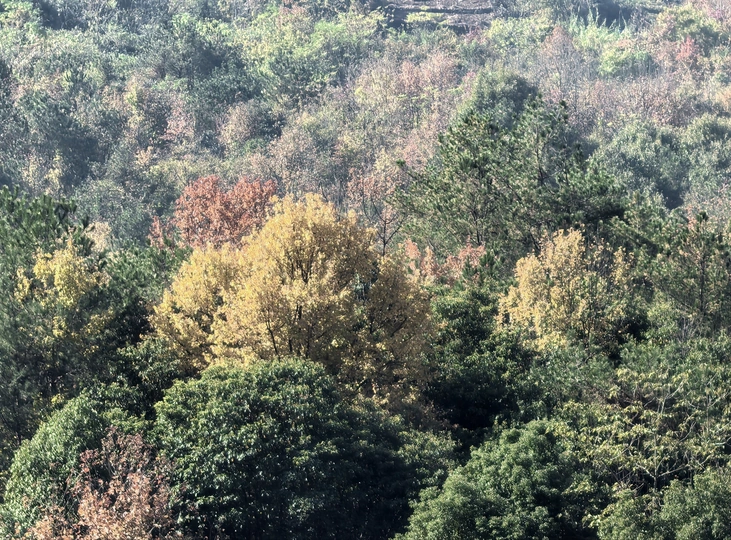 阳光明媚的秋季周末,骑车在山野间寻找靓丽的秋色