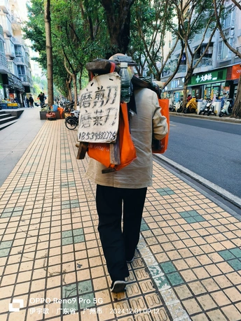 这年头在特大城市里已经很罕见这样的场景了,磨刀师傅不敢大声叫喊,只有背着广告牌默默无闻的行走着。