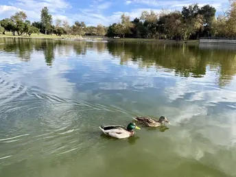 寒冬大雪时节,一对夫妻绿头鸭仍然相爱在绿水之中