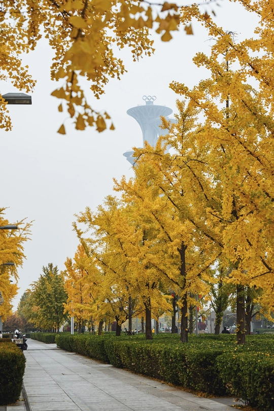 奥林匹克公园的鼓墙和银杏