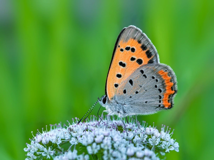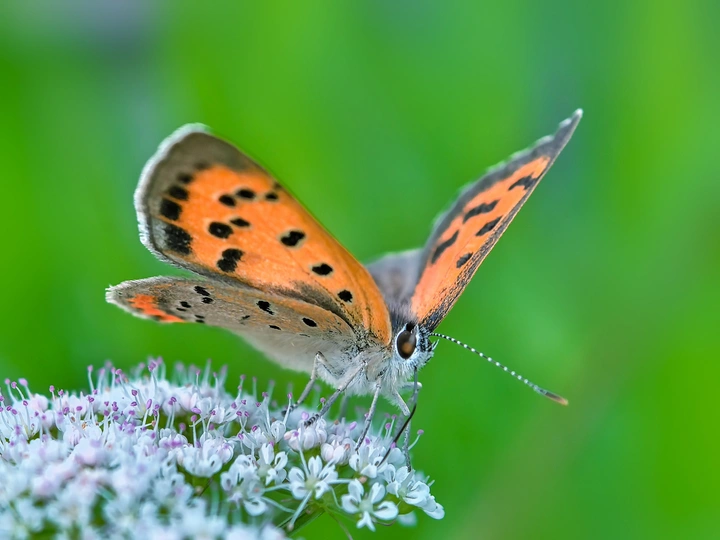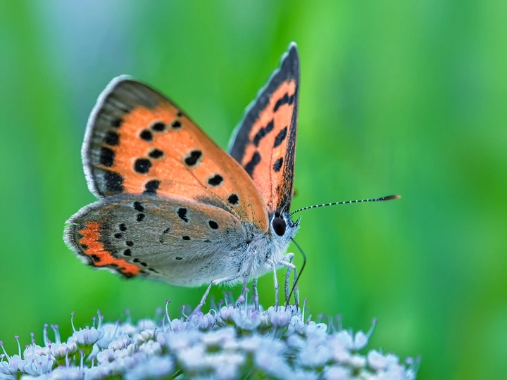 照片拍摄了一只彩色粉蝶不同的停歇和飞行姿态,生动展示了自然界的美好瞬间。