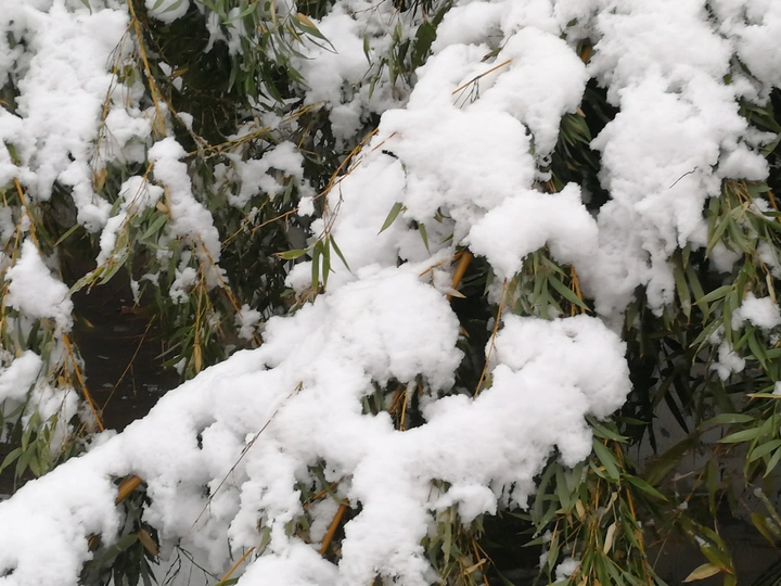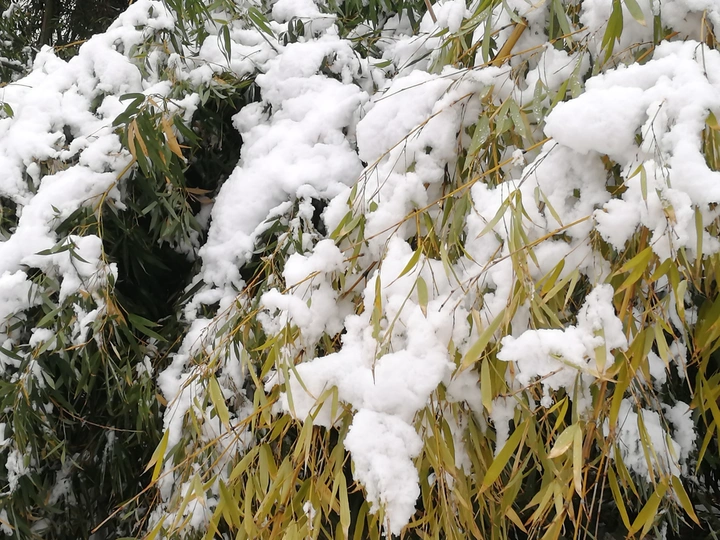 这些竹子被白雪压弯了腰,在阳光的照射下,他们就像一群婀娜多姿的姑娘呈现出不一样的风采!非常好看!