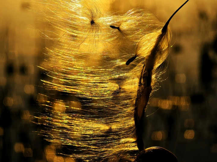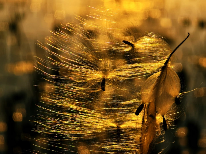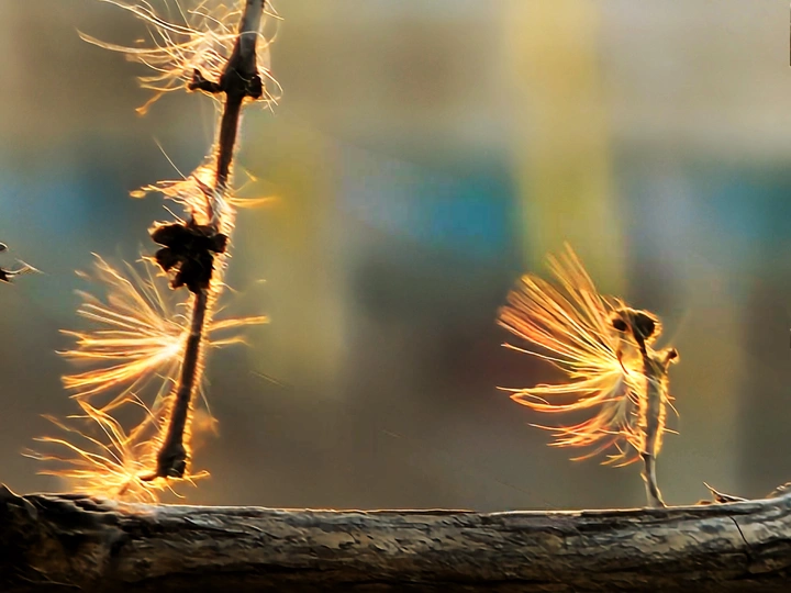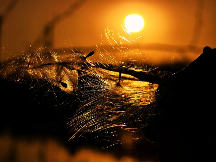 落日余晖下的毛絮