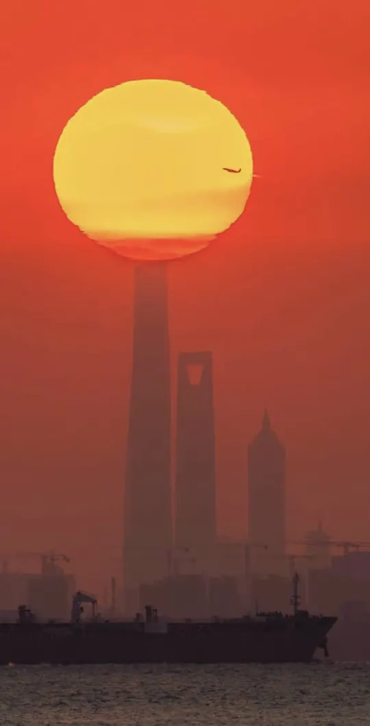 在长兴的恒沙岛,赶着落日前的最后一般轮渡,成功抓到了夕阳与三件套同框,飞机✈️凌日~~