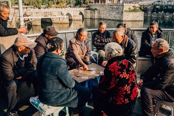 连续半个月阴天的贵阳,今天终于放晴了,漫步在南明河畔,偶然一帮爷爷奶奶在玩扑克牌,满满的松弛感。