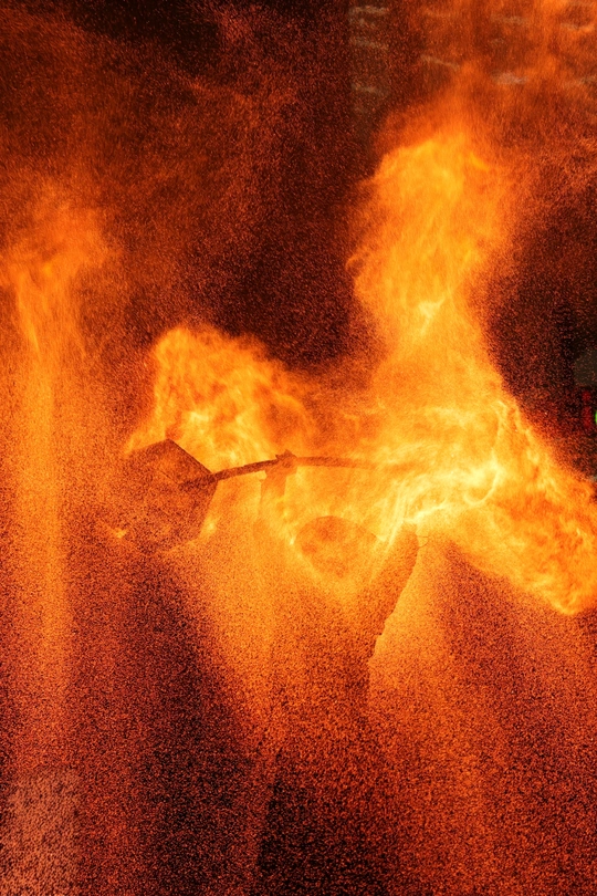 火树银花大概就是这样都吧,还有小“百家安宁”的祝福!民间绝技真的很震撼人心!表演者像浴火重生的勇士,手提火壶,从火焰中走来