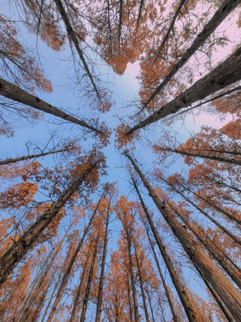 初冬的黄金时间,低角度仰拍了泉城公园的红杉林,表现其秩序感,色彩的对比及视觉冲击力。