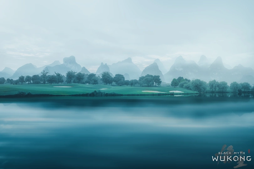 山峰耸立 递出一缕薄雾 水天相映 中留一股幽绿 了然纸上 丹青绘卷(raw来自tomas老师)