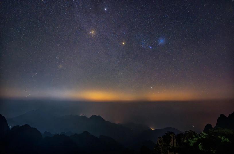 星星与太阳在黄山顶上交汇,邂逅一场星空的浪漫。