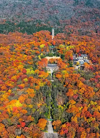 位于南京灵谷景区的灵谷塔,一到秋天美的像一幅画卷。