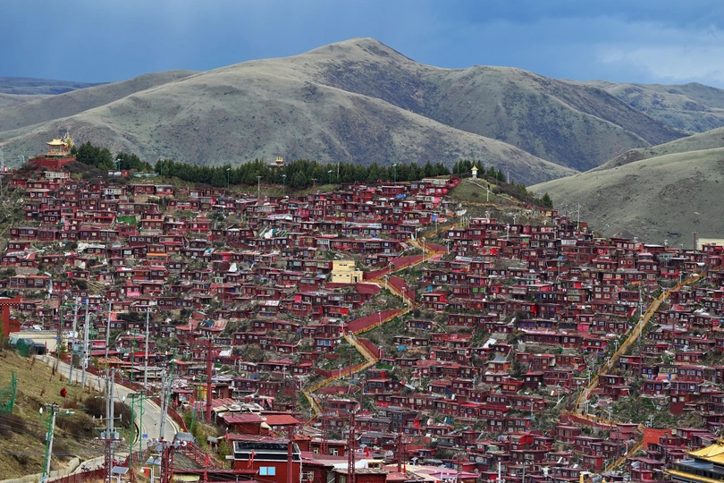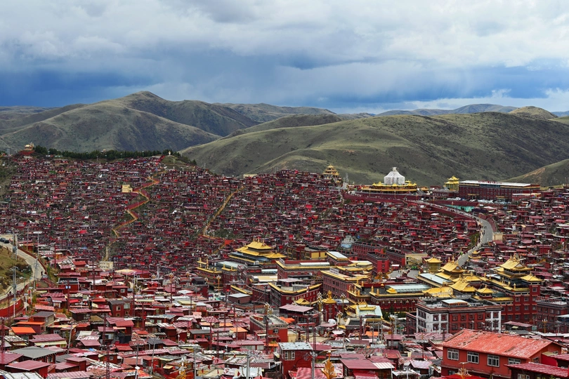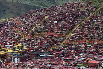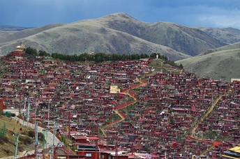 色达五明佛学院,经国家宗教事务局批准,由四川省佛教协会主办,位于四川省甘孜藏族自治州色达县洛若镇,平均海拔3900米,属藏传佛教宁玛派。学院前身为喇荣寺五明佛学院。1880年,德绛多吉修建一处藏传佛教宁玛派的“日追”(修行处)。上世纪80年代,宁玛派僧人晋美彭措扩建该修行点,创建小规模讲经院和禅修院各一座,时有32名学员,晋美彭措任堪布。1985年5月,形成喇荣学经点,至1993年,学经点学员增加至2千多人,经师54人。1997年,成立喇荣寺五明佛学院。
