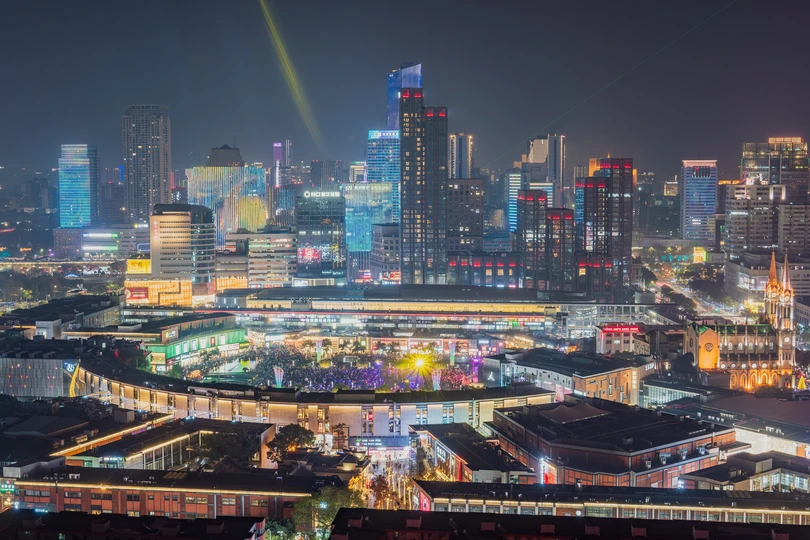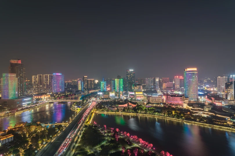 庆祝跨年,宁波三江口的高楼组合开启三江口灯光秀