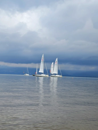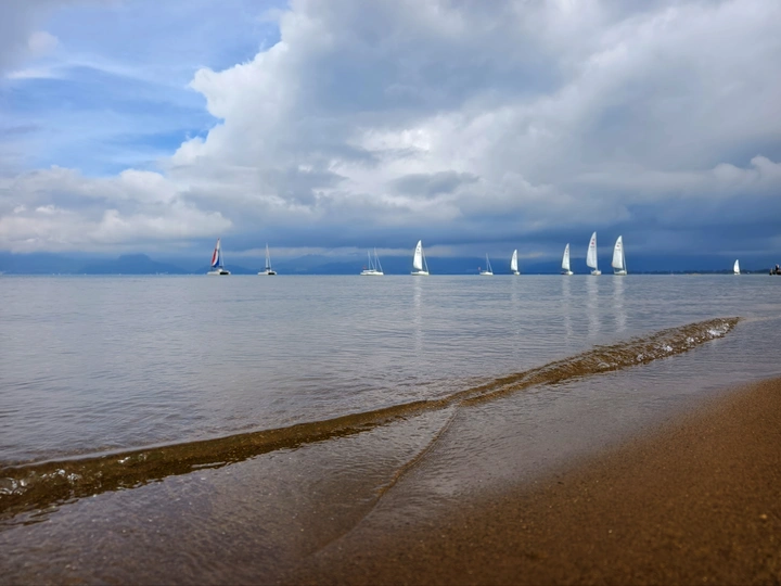 这组摄影作品以帆船为主题,展现了静谧水面上的帆船群,整体视觉效果宁静而优雅。作品在主题表达、叙事连贯性、风格统一性、镜头语言使用、故事性等多个方面都有其独特之处。 首先,从主题表达的统一性来看,帆船作为主要元素,在每一幅作品中都占据了重要位置,观者能够明确感受到“帆船”这一主题的突显。多个角度拍摄帆船的画面形成了一种和谐的整体,仿佛在诉说一段关于航行与探索的故事。 其次,叙事连贯性方面,各幅作品之间的联系较为紧密。不同的拍摄角度和构图方式使得观者在欣赏每一幅照片时,都能感受到一种“在海上航行”的连续性和流动感。这种构图选择很好地突出了照片之间的关系,仿佛在描绘一场航行的旅程。 在风格统一性上,整体作品展现了一种自然、宁静的美感。不同的光线和天气条件交相辉映,形成了层次感。尤其是天空云层的变化与水面的倒影相辅相成,营造出一种动静结合的效果,让人心生向往。 镜头语言的使用上,摄影师巧妙地运用了前景、中景和背景的结合,将沙滩的细腻质感与远处的帆船进行对比,增强了画面的深度。尤其在第四幅照片中,细腻的水波与沙滩的纹路形成了极好的前景设定,使得整幅画面更具层次感和戏剧性。
