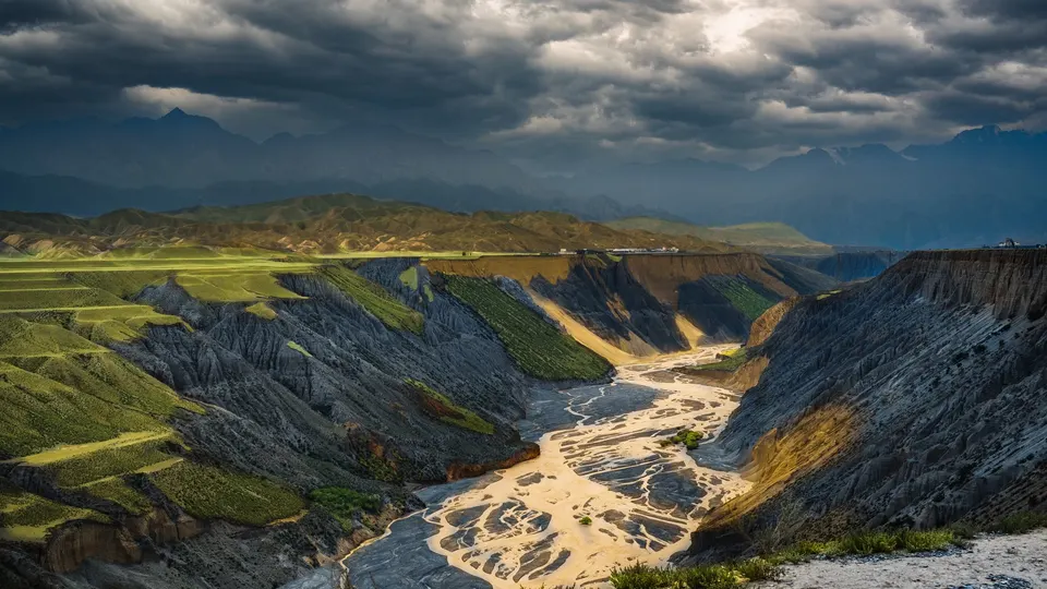 都是在网上看到新疆的风景,直到亲眼看到以后,第一眼给的冲击力和心灵的开阔是无法用言语表达的! 到达乌鲁木齐后休整一天,第二天就开车两小时来到了安集海大峡谷,这是新疆的第一站!现在峡谷的边缘,看到如此震撼的场景,我内心涌现出的只有"卧槽"!