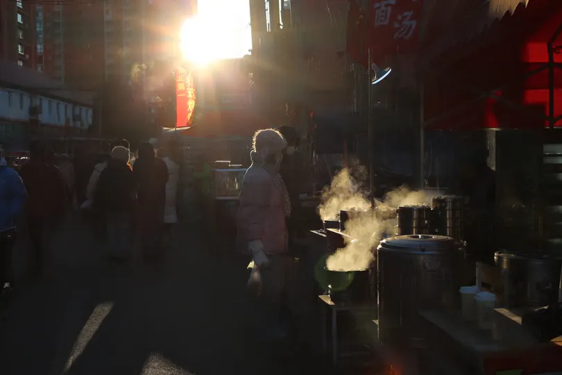 冬天沈阳的小河沿早市,冷,但热气腾腾的。