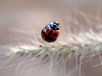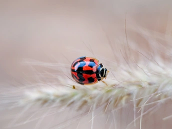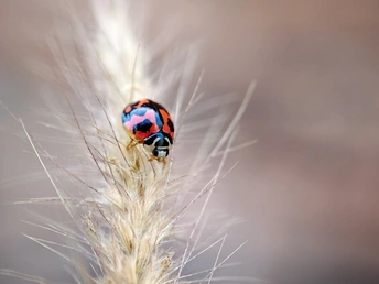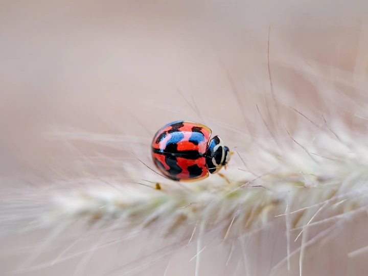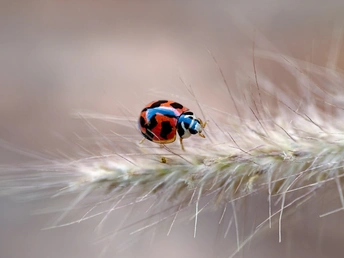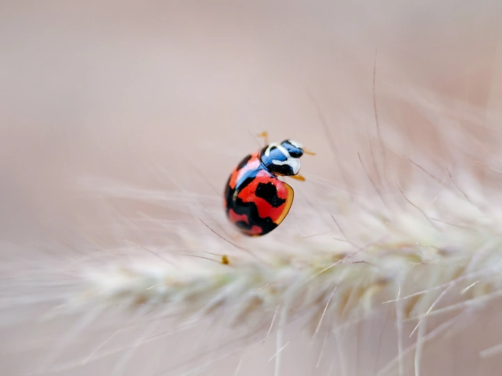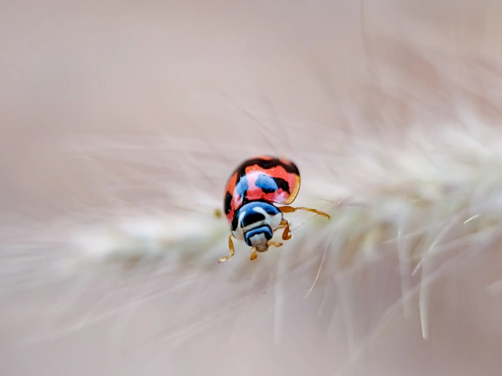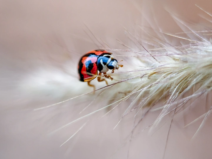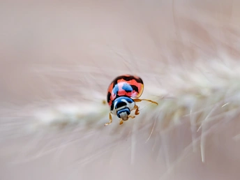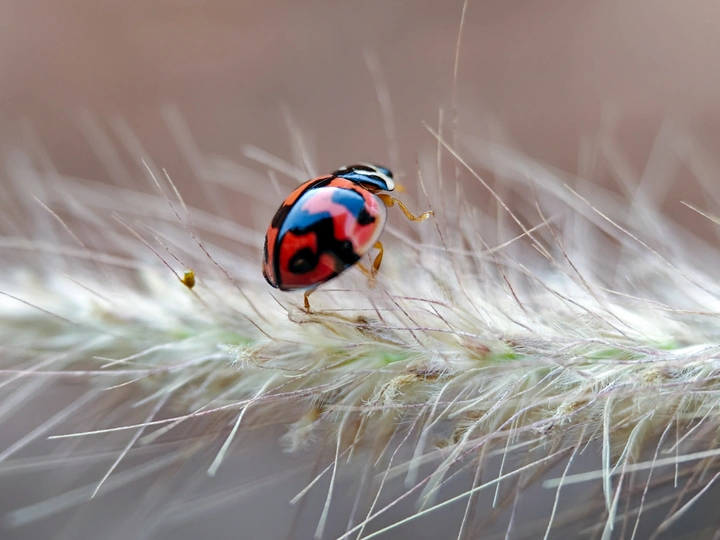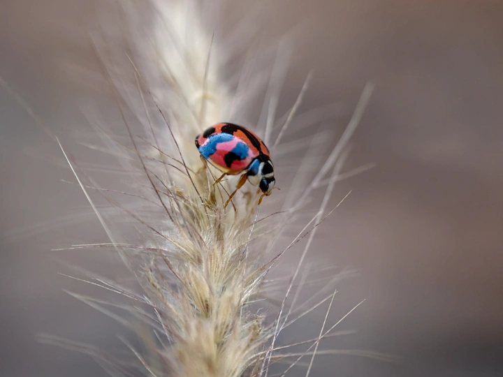 今天野拍发现一只小瓢虫围困在芦苇上 努力脱困像极了我们这些中年男人在家庭和事业上苦苦挣扎的样子