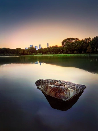这张照片捕捉了日落时分的静谧之美,整体而言表现良好,但仍有提升空间。色彩方面,天空由上至下的渐变色处理得不错,从深蓝过渡到暖黄,营造了日落的氛围,但水面的颜色过于深沉,与天空的色彩有些脱节,建议后期可以稍微提亮水面,使其色彩更丰富。光影方面,日落的光线柔和,为画面增添了柔美感,但岩石上的光影略显平淡,可以尝试在不同时段拍摄,捕捉更具戏剧性的光影。构图方面,岩石处于画面下方中心,作为视觉焦点,效果尚可,但可以尝试使用三分法构图,将岩石放在三分之一线上,可能会更显灵动。后期处理方面,色调和对比度的调整比较自然,但色彩的饱和度可以适当增加,使其更有活力。主题原创性方面,选取了城市公园常见的景观,缺乏一些新颖的视角,可以尝试更独特的拍摄角度或更富创意的表达方式。情感共鸣方面,照片传递了宁静祥和的氛围,但可以进一步挖掘照片的故事性,使其更具感染力。思想深度方面,照片更多的是对自然美景的记录,缺乏更深层次的思考,可以尝试在作品中融入更多个人情感或社会意义。总的来说,这是一张有潜力的作品,通过对色彩、构图和主题的进一步推敲,作品的整体表现可以提升一个档次。
