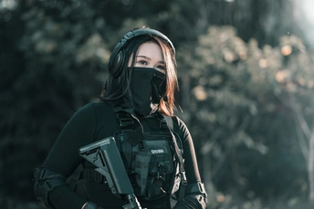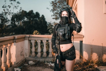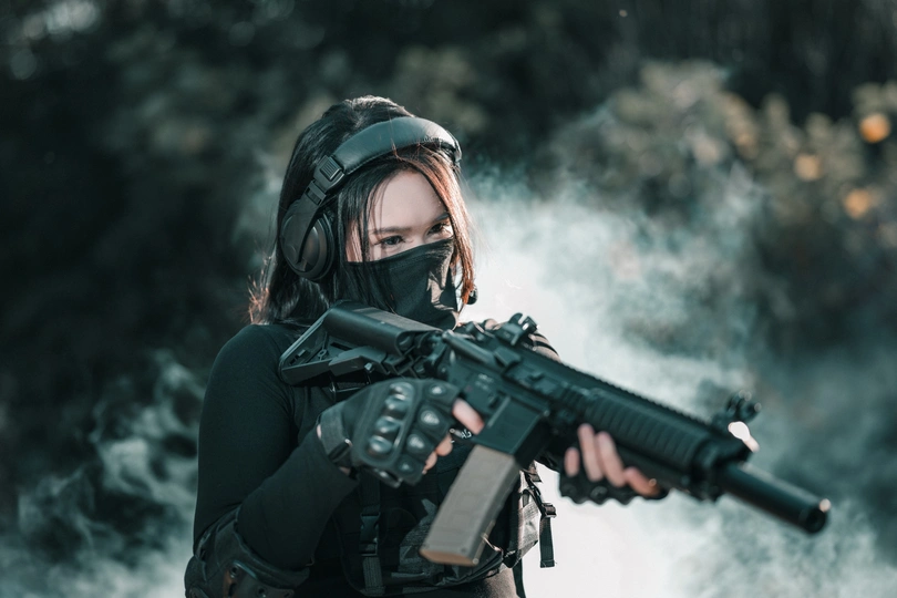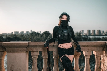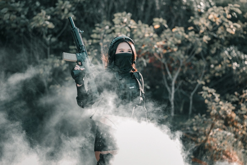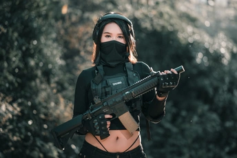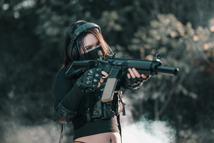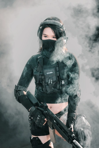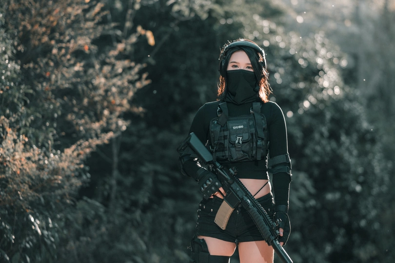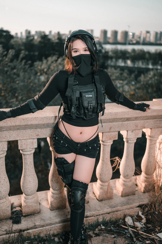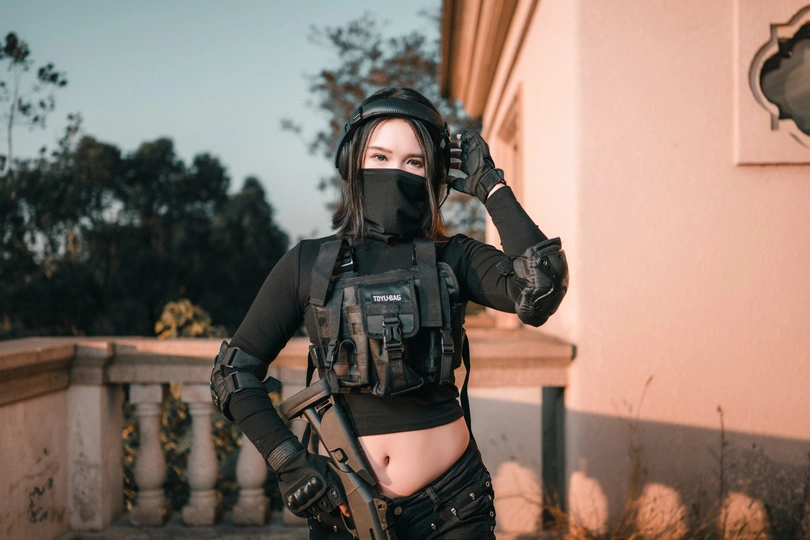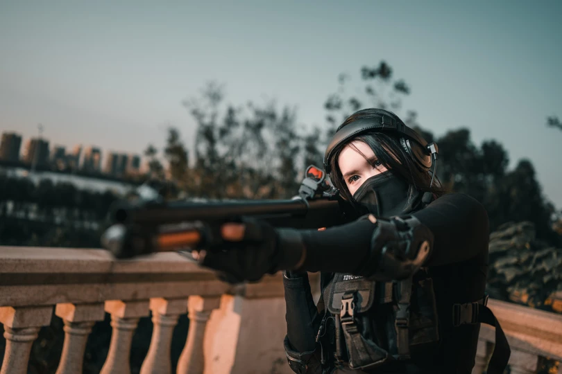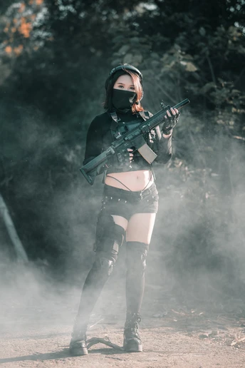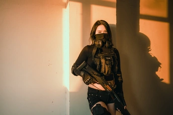 一座早已废弃的楼房,残破的墙壁和光影交错间,她手握枪械,步步为营。她的目光坚毅,仿佛在这片废墟中寻找最后的生机。枪声未曾响起,但寂静中蕴藏着无尽的危险与故事。 在残垣断壁的背景下,她的身影不仅象征力量,更让人感受到孤独中的守护与坚持。
