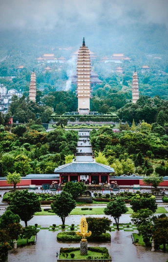 雨后的崇圣寺三塔,朦胧亦梦幻,云雾环绕下,静静地伫立,仿佛在诉说着千年的故事。