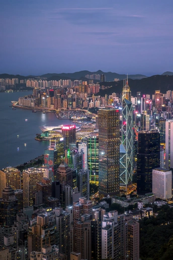入夜时分的维多利亚港,华灯初上,伴随着温柔的海风,静谧又华丽