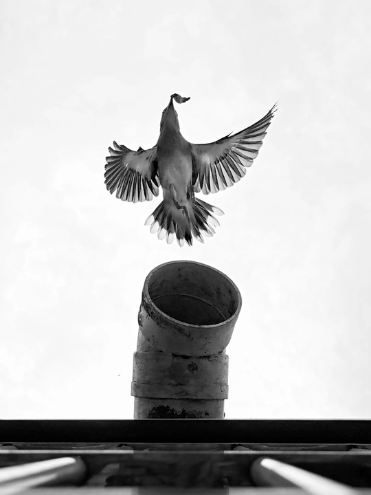 为了一个较为安全的地方,一只鸟把巢筑在排风口。它正清理着自己的爱巢。