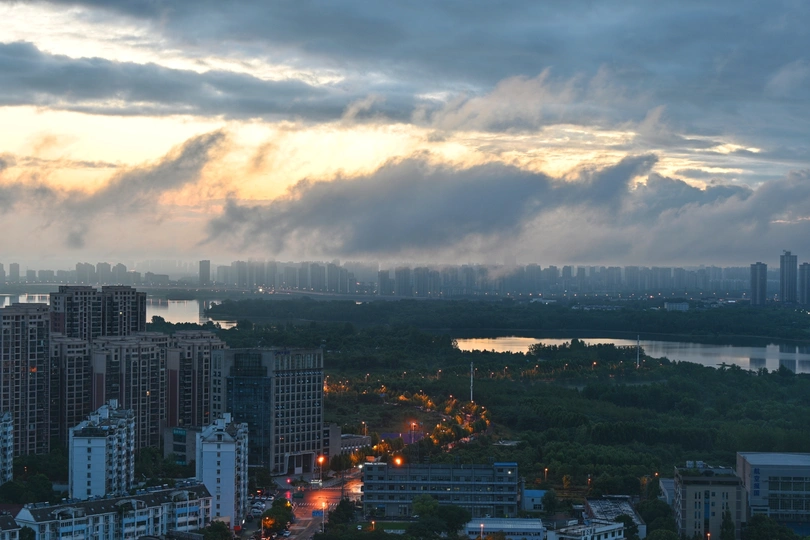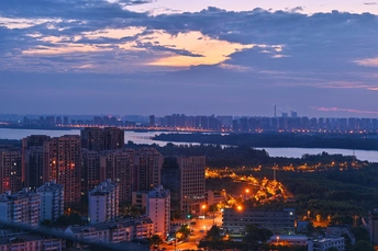 同一机位同一视角的城市建筑,在不同时间不同季节的不同变化。