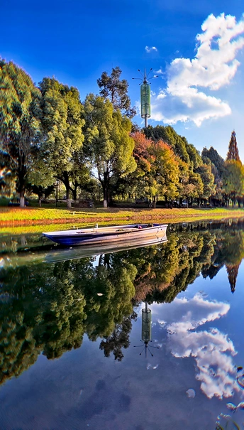 静谧的湖畔映入冬日的影像