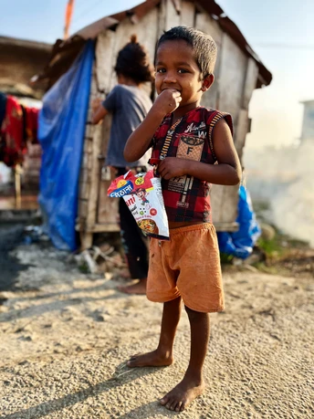 2024年04月拍摄(抓拍)于:尼泊尔蓝毗尼。 2024年04月01日,我造访尼泊尔蓝毗尼乡村,亲身实地了解当地普通人的真实生活。一位小男孩,他吃着售价只有5卢比(约合0.5元人民币)的零食,赤着双脚,衣服有些许破旧。尽管看得出他的家庭经济条件是比较贫困的(当地基础建设很落后,人们的生活条件普遍很贫困),但是孩子那双清澈纯真的眼眸,宛如夜空中最亮的星星,闪烁着无比纯净、璀璨的光芒;友善的脸庞流露出他的乐观和对我的好奇。 这位孩子给我留下了非常深刻的印象,我不禁用手机抓拍到了这一令我终生难忘的无比珍贵美好的影像!!