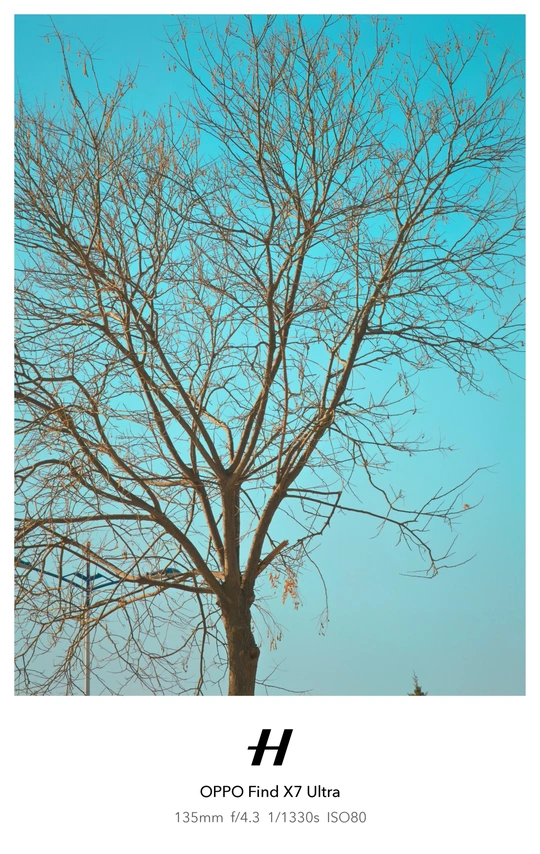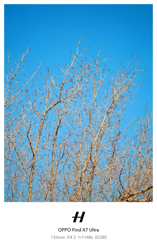 冬日的枝丫,映衬着纯净的蓝天,仿佛一副静谧的花卷。