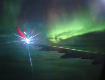 蛇年新春大年初一,在飞往摩尔曼斯克的飞机上拍到的绚丽极光!