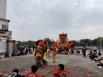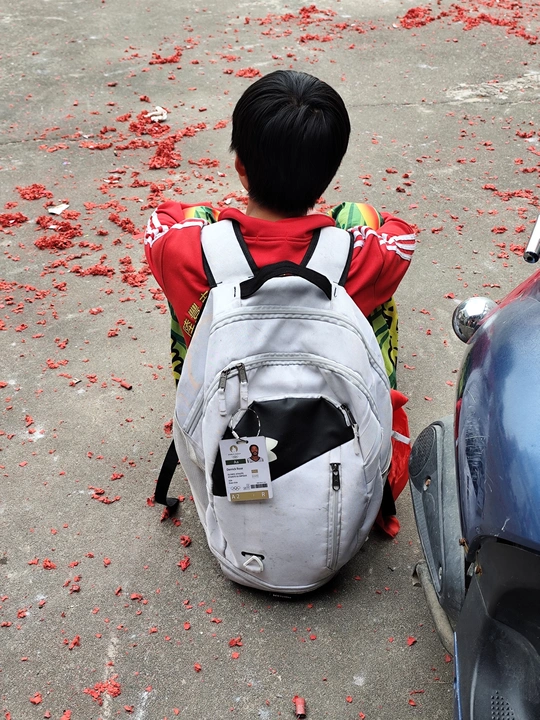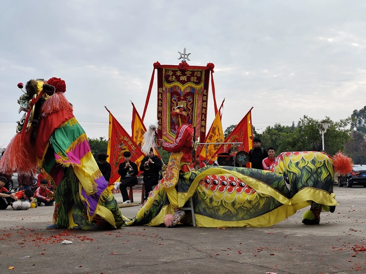 村里来舞狮队,清一色都是少年,只有锣鼓是老人