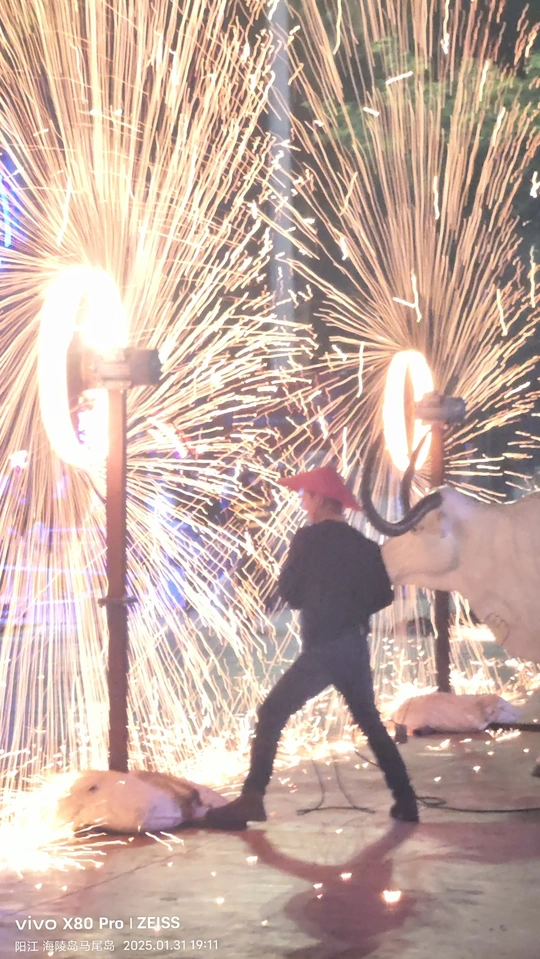 蛇年春节鼎龙湾德萨斯牛仔小镇,从初一至初五每晚有两场非遗项目‘打铁花’。节目丰富多彩。