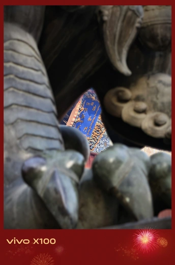 一踏入,古朴厚重的气息扑面而来。那精致的匾额,蓝底金字搭配周边栩栩如生的龙雕,尽显庄严华贵。殿顶的琉璃瓦在阳光下熠熠生辉,光影流转间,仿佛能看到往昔的辉煌。