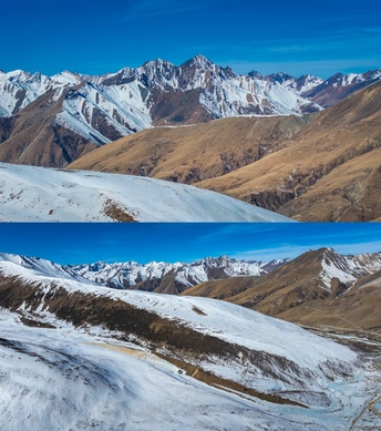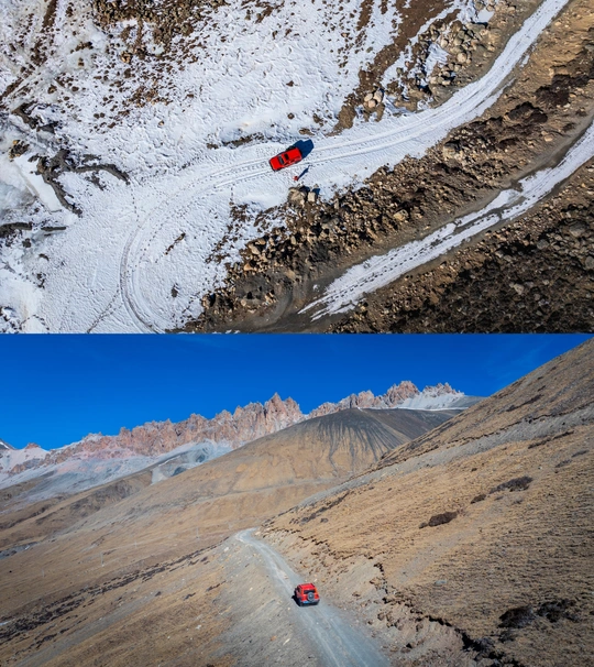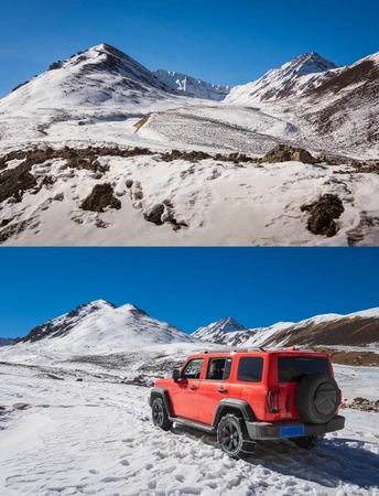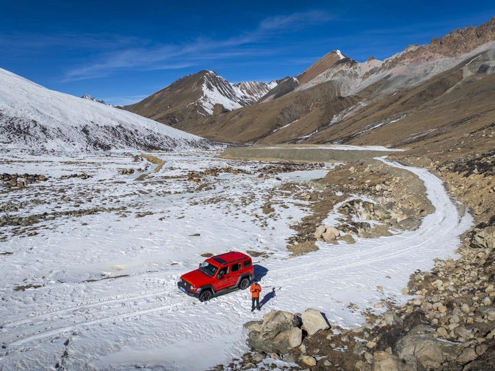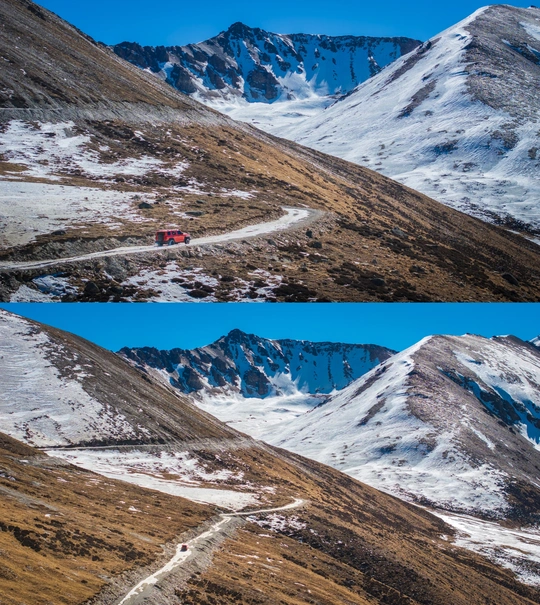 从那曲尼屋乡走349国道,中途换成越野路想前往昌都边坝;结果被困积雪,这里很久没人走过了积雪挺厚 最终靠加装防滑链和运用差速锁成功解困,老老实实回到349国道,不过此次冒险又多了一次驾车直面雪山的震撼