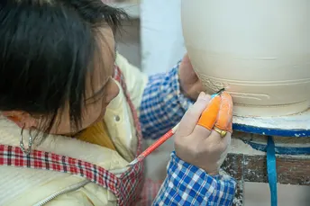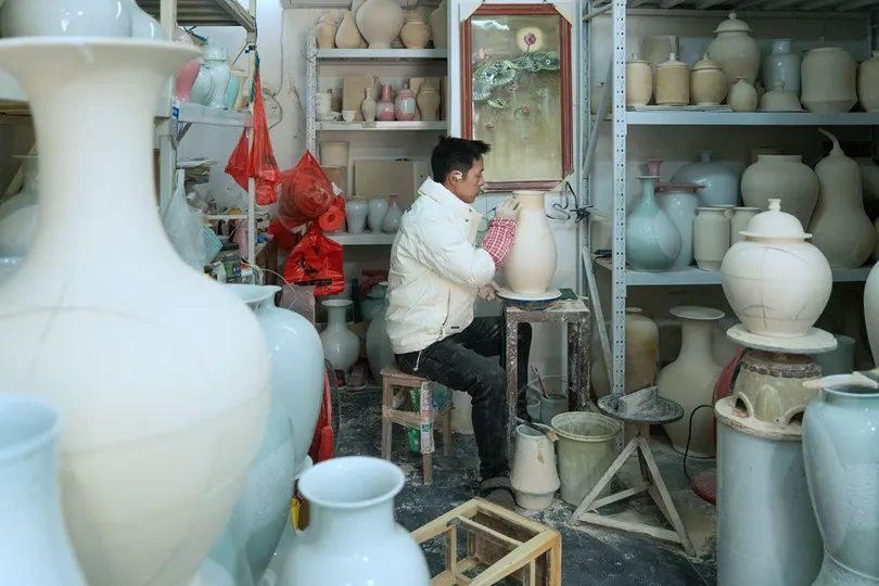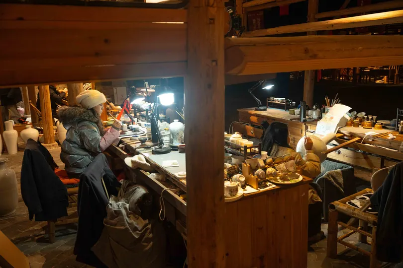 陶阳里和老厂的师傅们,二三十年日复一日地与瓷器相伴,悉心或制坯或雕凿、或涂色或打磨——专注的眼神中将瓷艺传承。