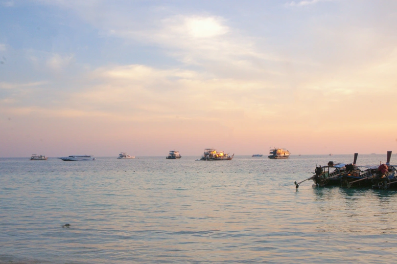 夕阳下的海平面