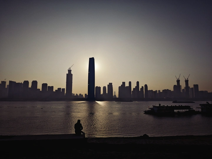 在一个十一月的早上走到武汉的江滩边看到日出,也看到这城市的发展动力。
