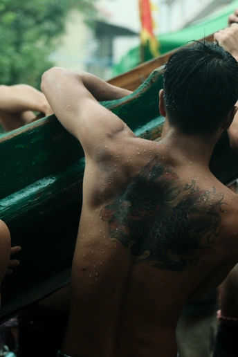 这是一场在汕头市澄海区东里镇南社村的龙舟比赛 潮汕划龙舟比赛都得体格特别好的男人参加,都特别健壮,因为这本身就是个体力活。