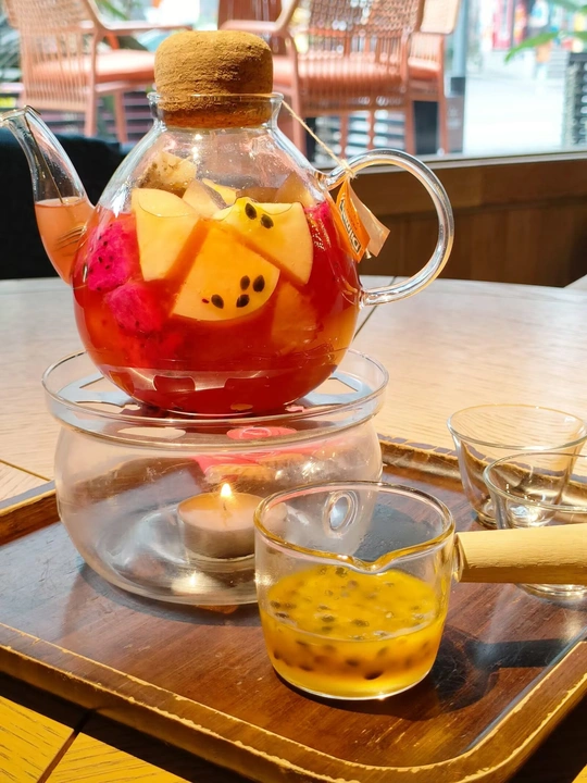 阳光明媚的午后,在西餐厅的窗边如此惬意,来一壶下午茶,别有一番意境,清香的百香果混合着甜蜜的香橙味和火龙果的酸甜,瞬时间打开味蕾,治愈好的心情,又是元气满满的一天