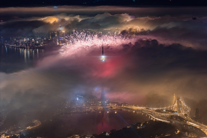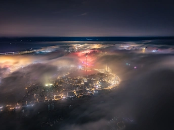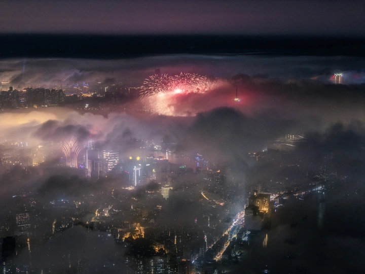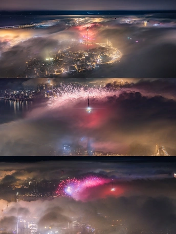 当元宵节?➕平流雾☁️➕烟花??❓ 答案当然是1.5亿的烟花看了一块五 平流雾本来是航拍的最爱,但两者碰上对于相机机位就是灾难 还好这次和朋友们都带了飞机✈️得以在云间依稀看到一点烟花,不得不说无人机真的是预防翻车的最佳保险。 最后放一张相机翻车照