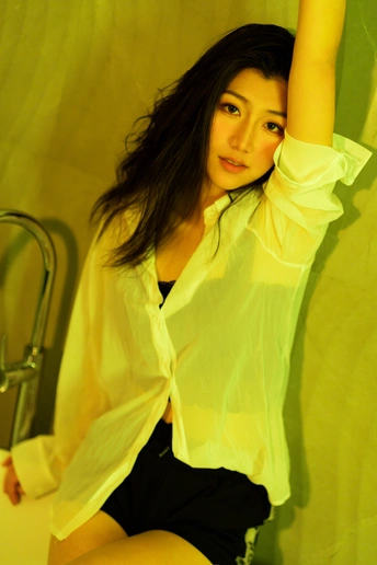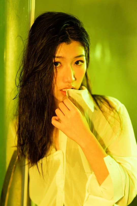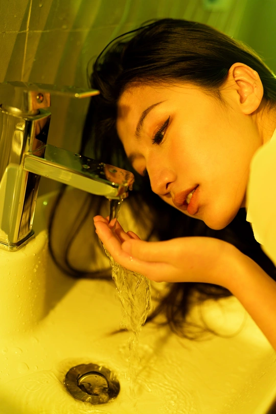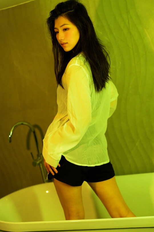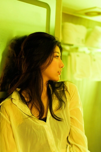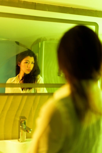 这组作品使用绿色led灯做背景填充光,暖黄色光做面光,在浴室中模仿出一种湿润和情绪的感觉