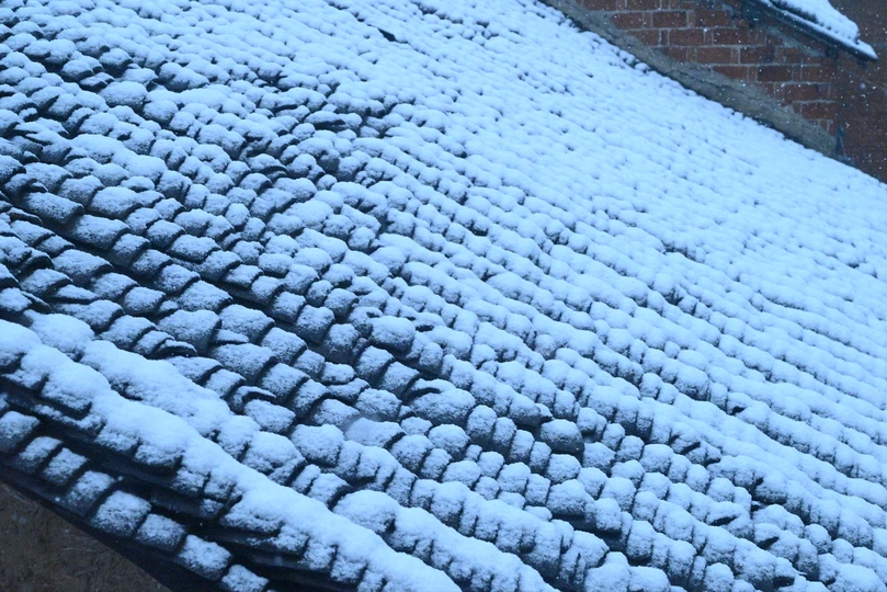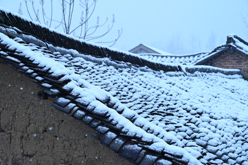 瓦片上的雪