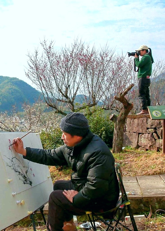 四季轮回年复年 又到东村梅争艳 闻香赏花留笑脸 入镜入画入梦来