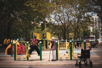 在阳光斑驳的公园角落,李奶奶总会拄着拐杖准时出现。她静静地看着老伙伴张奶奶在健身器材上活动。曾经,她们一起带孙辈玩耍,一起分享生活琐碎。如今,张奶奶依旧活力不减,李奶奶身体却大不如前,只能在旁守望。那辆轮椅,像是时光的沉默见证者。可她们的眼神交汇时,满是岁月沉淀的情谊,无声诉说着这平淡却珍贵的日常 。