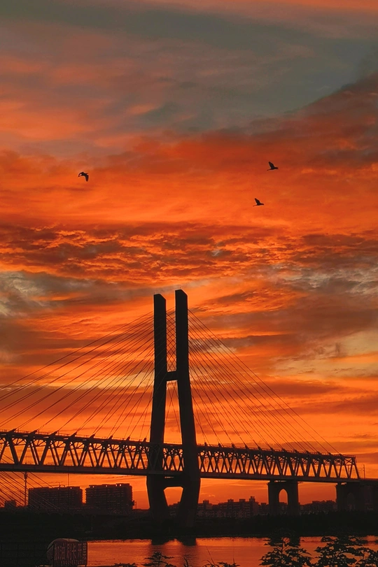 落霞里的徐盐高铁新洋港大桥